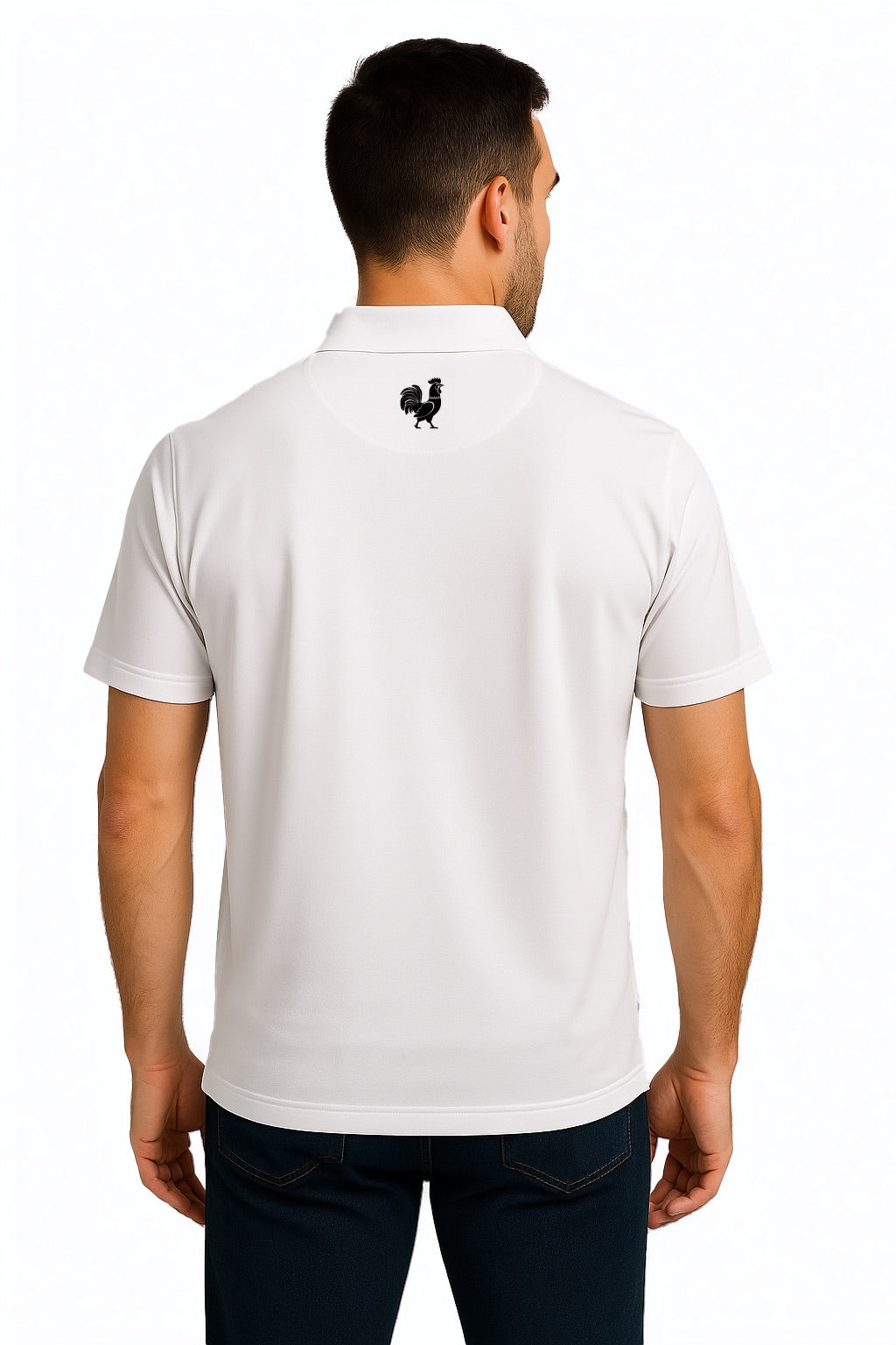 Each polo features our signature black rooster logo between the shoulder blades—a subtle nod to bold Southern style.